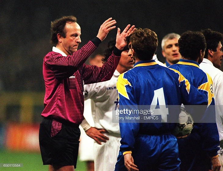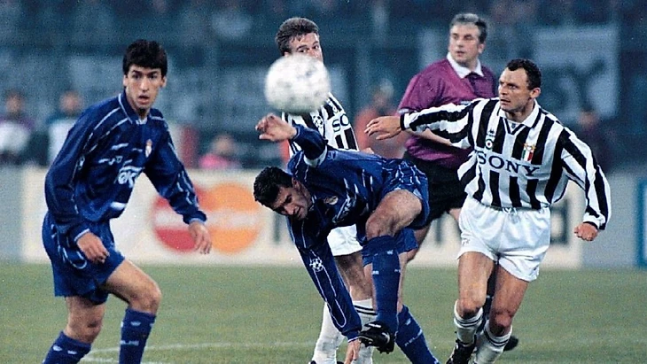 20 марта 1996 года на поле стадиона «Делле Альпи» города Турина, первой столицы объединенной Италии вышли «Ювентус» и «Реал». В роли судей выступали лазутчики из стана голландцев Марио Ван дер Энде ( главный лазутчик), Долстра и Клуг. Главный , под предлогом разных по его мнению штрафных , часто доставал карточки и что-то там отмечал …8 раз.