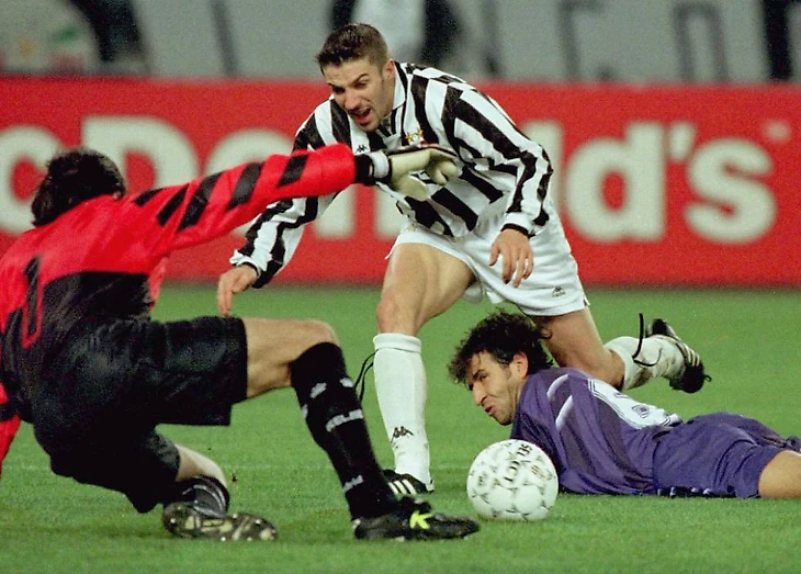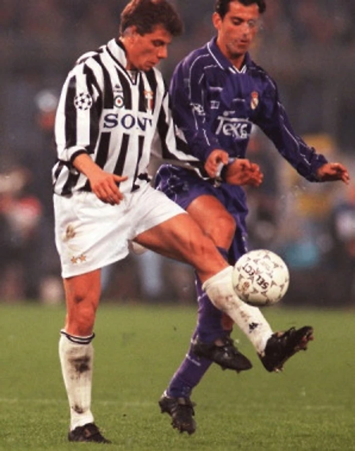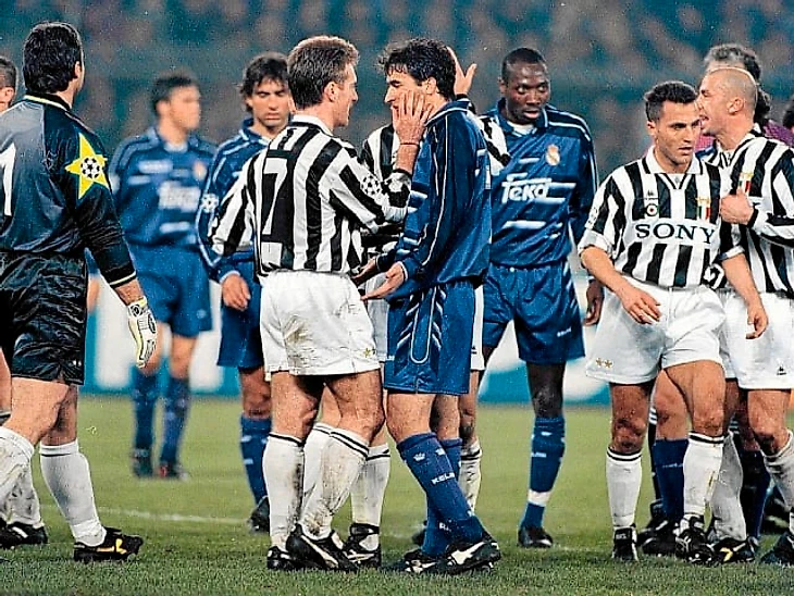 Дель Пьеро в своем стиле на скорости обыгрывает двоих на правом крае и на высоте коллиматора ЗУ-23мм навесил в штрафную, Виалли ударил в одно касание, очень красиво все было, как и выбор позиции Сантьяго Каниссареса. Поррини пасует Дешампу, француз играет в «стенку» с Падовано, выводят Дель Пьеро на рандеву с вратарем и Алькорта ценой красной карточки снова спас «Реал».