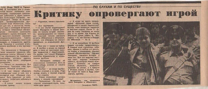 Если у кого есть время и желание могут посмотреть, например, матчи киевлян с шотландскими «Глазго Рейнджерс», «Селтиком», «Утрехтом», «Атлетико» или же матчи сборной с Англией, Италией. Что же касается карьеры в «Ювентусе», то я как болельщик клуба должен с горечью констатировать факт - туринский клуб был в плачевном состоянии и напоминал нынешний «Спартак», ни игры, ни состава, ни внятной стратегии. Это «Ювентус» был не в порядке, а Заваров имел право на адаптацию и время на раскачку.