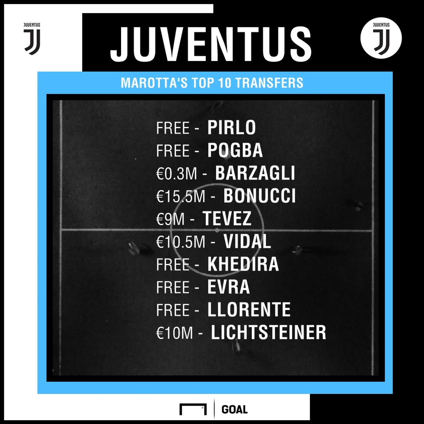 Маротта привел в клуб Андреа Бардзальи всего за 300 тысяч евро, привел нынешних незаменимых Леонардо Бонуччи, Пауло Дибала, Алекса Сандро, Миралема Пьянича, Блеза Матюиди, Войцеха Щенсны, Хуана Куадрадо, игроков обоймы Гонсало Игуаина, Дугласа Косту, Федерико Бернардески, Ругани, Хедиру. За самого дорогого из них было заплачено 90 миллионов. Это Гонсало Игуаин, который, своими бомбардирскими и самое главное, бойцовскими качествами завоевал любовь и уважение фанатов.