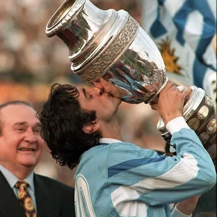 Основным был Энцо Франческоли, великий уругвайский футболист, самый великий из увиденных мною за многие годы. У меня дома был постер со сборной Уругвая после победы на «Копа Америки 1995». Энцо на переднем плане с кубком ! Жаль, во времена Франческоли не было в сборной игроков его же масштаба. Я очень много мечтал в детстве, представляя Франческоли в форме «Ювентуса». Вожак стаи привел (даже не топовый) Уругвай к титулу сильнейшей команды Южной Америки три раза! Один раз в Аргентине(!) 1987 году.