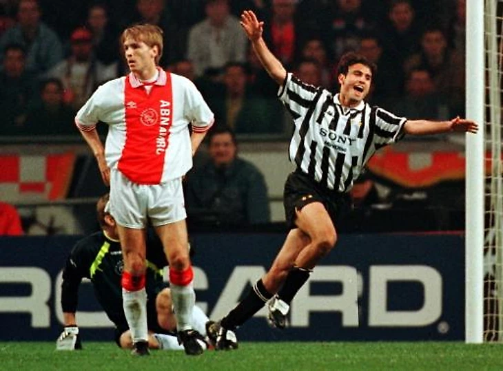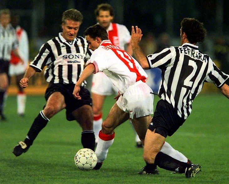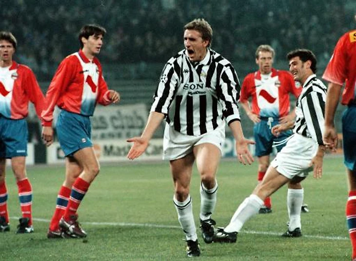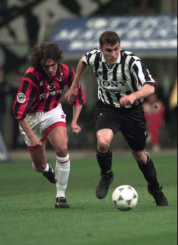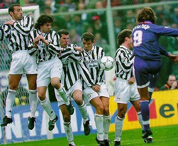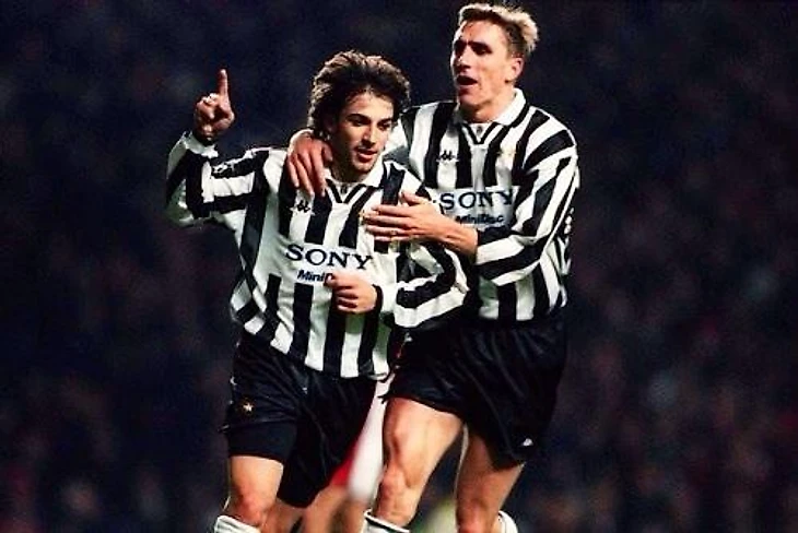 Конечно, были «моменты». Например, когда играл Югович, «Ювентус» мог себе позволить иметь кулак в центре. Тогда справа в защите действовал Поррини, Конте или Дешам отвечали за центр полузащиты, Торричелли играл строго правого полузащитника, Дель Пьеро и Зидан создавали буферную зону, а в атаке играл Вьери чаще, и Падовано реже. Это выглядело как 4-3-2-1. В два центральных защитника, без вопросов. В этом построении Дель Пьеро играл от углового флажка до Зидана и Вьери, создавая «Бермудский треугольник».