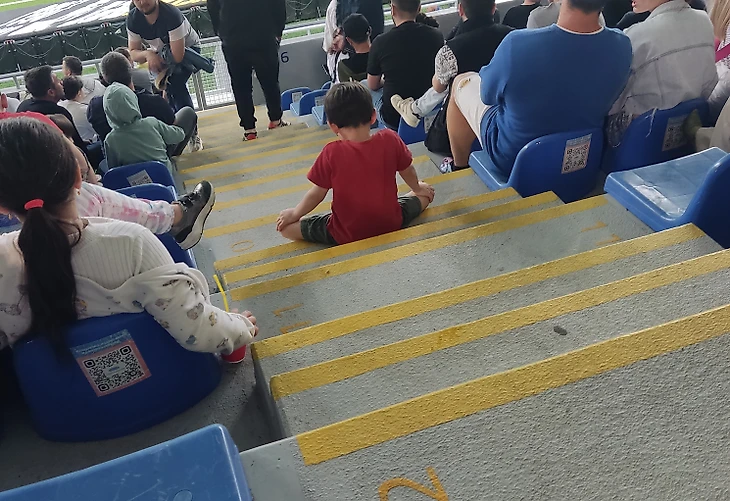 Помимо игры, поддержки трибун с обеих сторон, хотел бы отметить другие, по моему мнению, забавные моменты. Например, на фото ниже юный болельщик, которому дела нет до происходящего на поле. А еще более забавно, что и стюардам до него тоже нет дела - спокойно проходили мимо, не предпринимая каких-либо дисциплинарных действий.