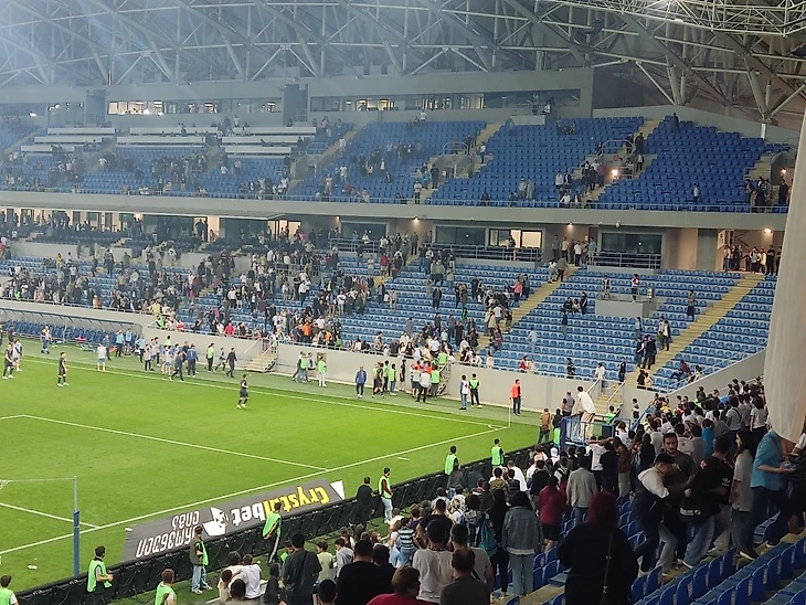 Однако и тут не обощлись без приключений. С центральной трибуны в сторону футболистов понеслись оскорбления от отдельных индивидов, с которыми выяснять отношения пошли, как сам футболист, так и активные фаны, которые не имели претензий к динамовцам по самоотдаче, несмотря на результат.