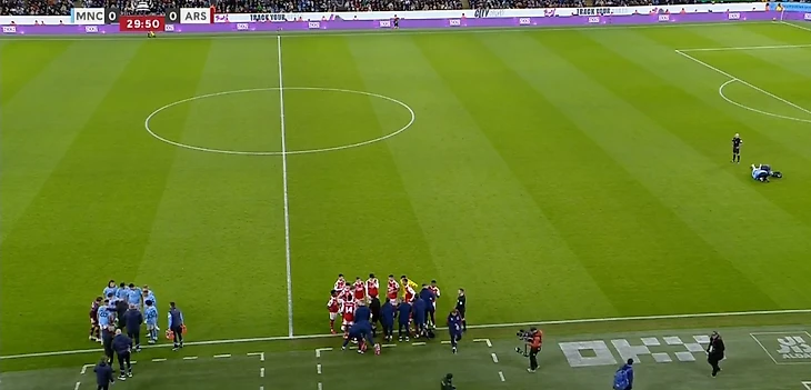 На 30-й минуте режиссеры игры между «Сити» и «Арсеналом» показали суперметафоричный кадр. Эрлинг Холанд рухнул на поле после стыка с Робом Холдингом. К норвежской звезде помчали врачи. Микель Артета и Пеп Гвардиола паузу не упустили: подозвали игроков на быстрое собрание.