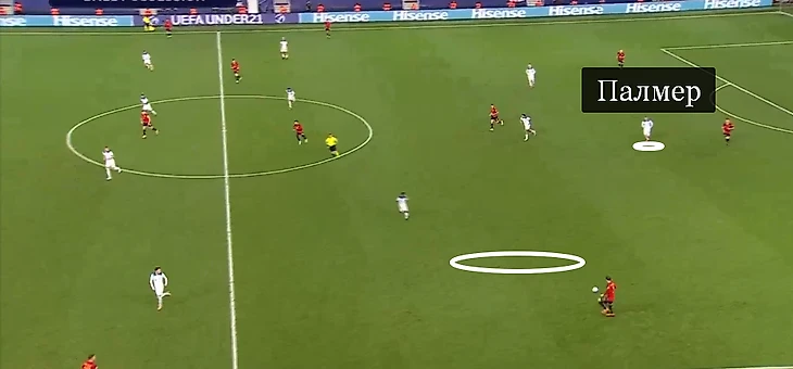 Высокая оборона включалась благодаря Коулу Палмеру. Полузащитник «Сити» смещался со стартового левого фланга в центр, где поддавливал испанских защитников.