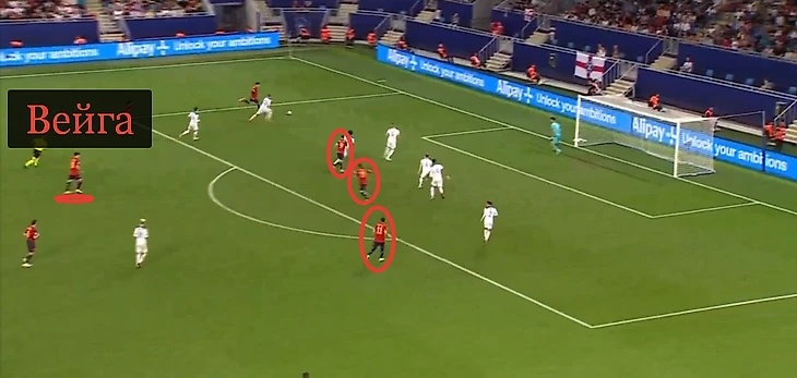 На 17-й минуте прессинг Англии привел к перехвату Эйнджела Гомеса в центральной линии. На 21-й – склонил испанского защитника к неточному среднему пасу.