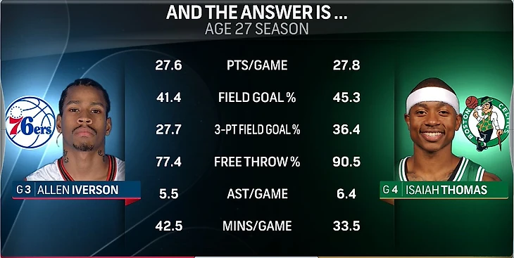 То, что делает Томас в четвертых четвертях, и вовсе не укладывается в голове. С показателем в 10,1 очка он лидирует среди всех игроков лиги с 1996 года (когда НБА начала вести статистику результативности по четвертям). Лишь четыре игрока набирали больше 8,5 очка: Трэйси МакГрэйди, (8,6 в сезоне-2002/03), Кобе Брайант (9,5 очка в сезоне-2005/06), Леброн (9,1 очка в сезоне-2007/08) и Расселл Уэстбрук (9,4 очка в сезоне-2016/17).