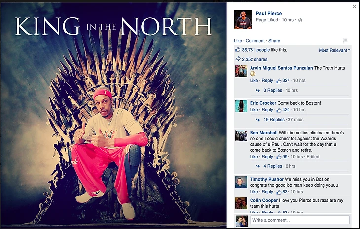 Пирс набрал 28 очков в гостях. После сирены он прокричал трибунам: «Увидимся в следующем году», повернулся к партнерам и добавил: «Осталось еще два матча». И тут же дал интервью Дорис Берк: закончил его подмигиванием и фразой «мы едем домой, чтобы закрыть серию».