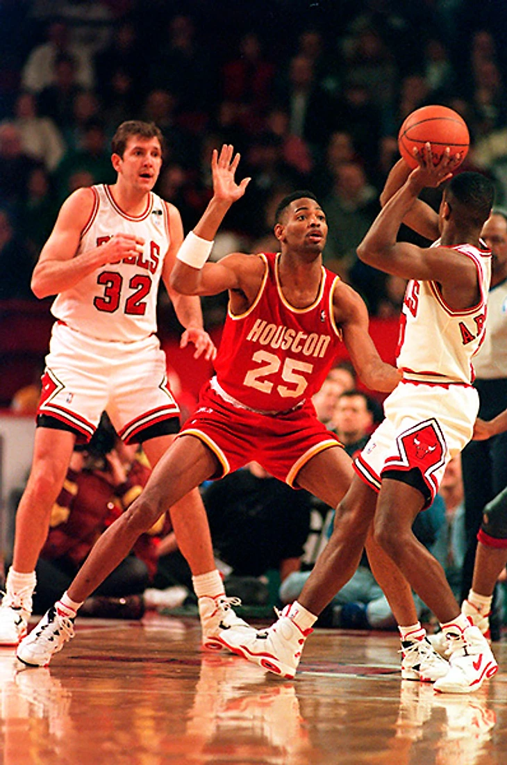Дрекслер всех быстро переубедил. Он появился, когда Оладжувон пропускал матчи из-за анемии, и сразу же превратился в лидера – целый месяц набирал по 30 очков и 10 подборов в среднем, тащил на себе атаку и вызвал хотя бы какой-никакой призрак оптимизма. Он стал тем дополнительным генератором нападения, который был так нужен «Хьюстону». Он даже ненавидел Джордана почти так же сильно, как Вернон Максвелл.