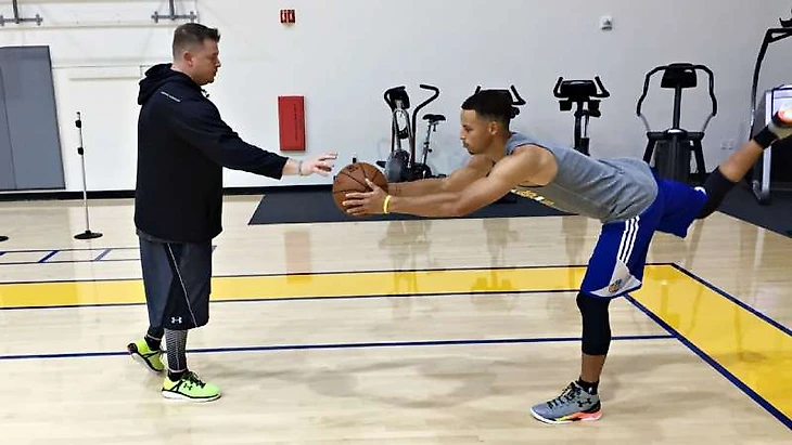 Пэйн моделировал для него гиперсложные условия. Карри нужно выполнять упражнения и при этом вести мяч другой рукой. Или попадать из-под кольца и со средней дистанции. Ловить теннисные мячи. Выполнять игровые действия с сопротивлением висящего на нем каната.