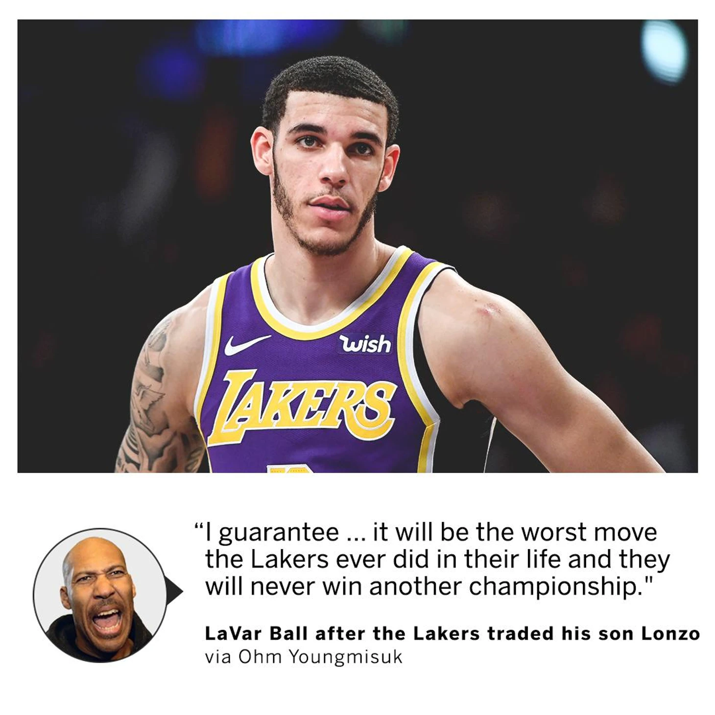 Согласно инсайдеру ESPN Эдриану Воджнаровски (он никогда не ошибается), «Лейкерс» заполучили центрового Энтони Дэвиса и отдали взамен «Новому Орлеану» разыгрывающего Лонзо Болла, форварда Брэндона Ингрэма, защитника Джоша Харта и три пика первого раунда, включая 4-й пик драфта-2019.