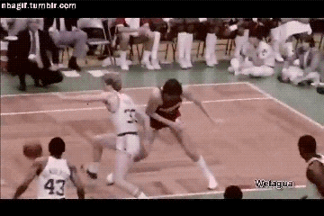 Берд утратил даже ту минимальную гибкость, что у него была, и к концу карьеры уже бегал прямой как доска и отлеживался на боковой во время замен.