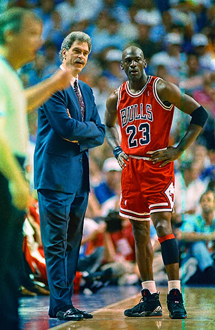 В дальнейшем он повторял, что из открытого конфликта и выяснения отношений ничего путного извлечь невозможно. Джордана годами заклинали всем коллективом, и Джексон даже называет точный момент, когда тот сломался: в 89-м году в матче с «Ютой» Джон Стоктон каждый раз шел дабл-тимить лидера «Чикаго» и оставлял Джона Паксона одного, Джордан принялся пасовать на партнера, и тот набрал 27 очков.