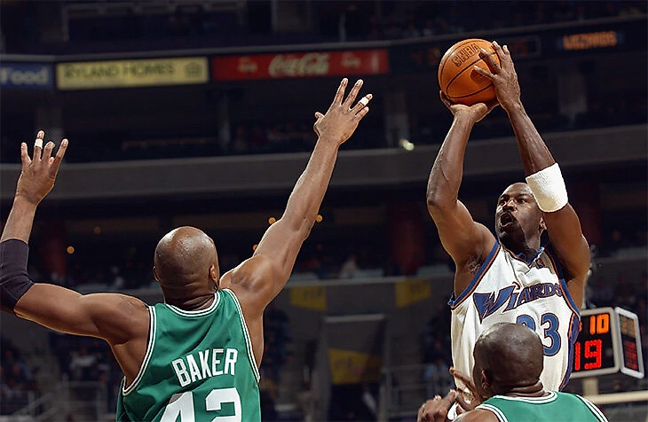 На это «Вашингтон» неожиданно ответил 9-матчевой победной серией. А одноногий капитан оставался плюсовым игроком, даже несмотря на то что редко выбивал больше 42%. Прямиком в легенды отправились две встречи того периода. В Мэдисон-Сквер-Гардене Джордан расправился с Летреллом Спрюэллом (3 из 16) и положил через него же победный мяч за 3 секунды до сирены. В Торонто вышло по классике. В первой половине Винс Картер набрал 23 очка и начал цепляться к Джордану – получив фол, бросил судьям: «Ну да, спасайте его». Во второй – Джордан не дал ему набрать ни одного очка и задавил и физически, и психологически. «Вашингтон» вернулся с «-19» и победил.