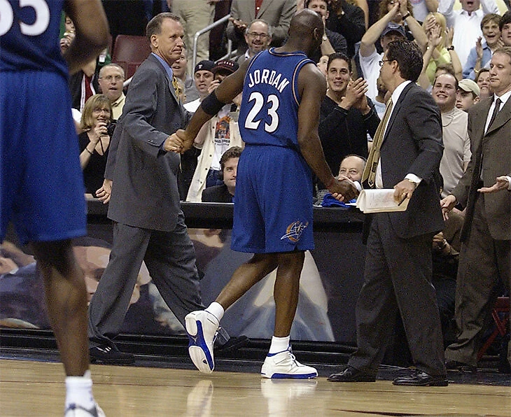 А еще показал, что Джордан остается Джорданом, даже если он, ###, на пенсии. После поражения от «Клипперс» (при преимуществе в 19 очков по ходу игры) президент ворвался в раздевалку и объявил игрокам «Уизардс», что те «опозорили его перед болельщиками» и испорчены «психологией лузеров»: «Я с удовольствием бы вас всех обменял, но, к несчастью, вы никому не нужны».
