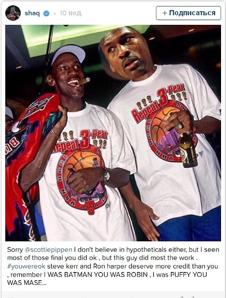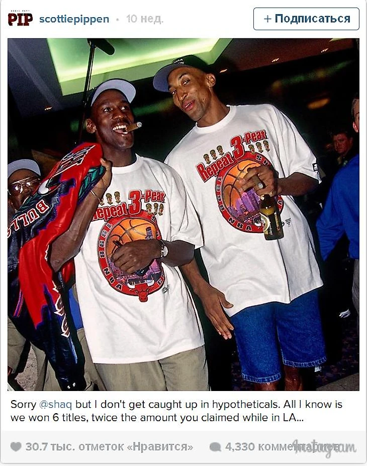 «Извини, Шак, но мне не очень интересны гипотетические расклады. Что я знаю, так это то, что мы выиграли 6 титулов, вдвое больше, чем ты с «Лейкерс».