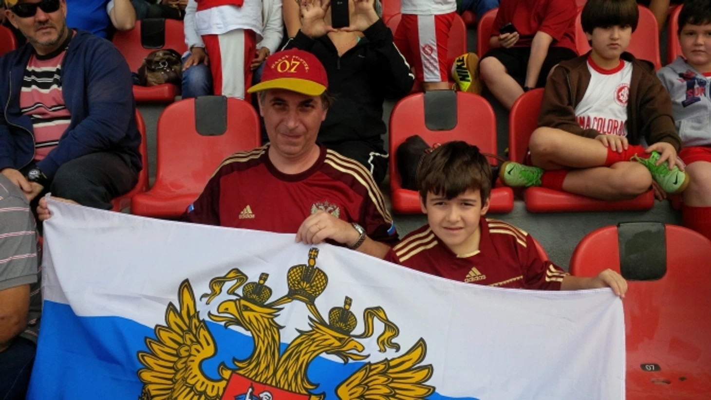 Марсело и Артуро. Где нашли флаг и футболки сборной России, неизвестно. Никого из игроков сборной России не знают