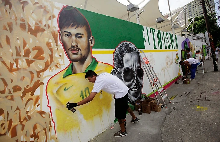 Но в Рио хватает и других граффити Неймара. Здесь Неймар посылает на прощание воздушный поцелуй Мараканасо (так называют главный матч ЧМ-1950, в котором Бразилия на «Маракане» проиграла Уругваю – игра вошла в книгу рекордов Гиннесса 199 854 зрителя).
