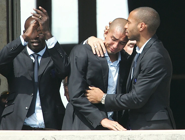 На чемпионате мира Трезеге вышел на поле из-за травм Гиварша с Дюгарри, сразу забил, с Данией заработал пенальти, а Тьерри Анри после той игры выменял майку у Микаэля Лаудрупа, кумира своего детства, и предложил Давиду: «Давай сделаю тебе стрижку, как у меня». – «Валяй». Уселся, Тьерри включил машинку, и через пару секунд на темечке Трезеге появилась проплешина. Один заорал, другой захохотал, но пришел Фабьен Бартез и побрил наголо обоих, чтоб не шумели. Через неделю – четвертьфинал с Италией, по нулям после ста двадцати минут и серия пенальти.