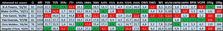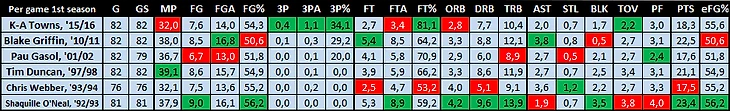 Карл-Энтони Таунс – это тот игрок, который в свой первый сезон показал игру на уровне лучших звезд лиги; чей первый сезон статистически сравним с такими звездами, как О’Нил, Оладжувон, Юинг, Робинсон и Данкан, причем только Шаку, как и Таунсу, было двадцать лет на момент дебюта в лиге.