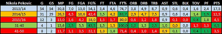 Чтобы не писать по два раза, скажу сразу – Никола Пекович получает мою номинацию "Разочарование сезона". Я видел черногорского великана в его лучшее время, поэтому сейчас мне физически больно смотреть на то, как он пытается вернуться на площадку. Пек провёл в этом сезоне 12 матчей и 150 минут, забил 50 очков со смешным процентом, собрал жалкие 20 подборов… Пожалуй, адекватным резюме шестого сезона Биг Пека можно назвать комментарий от funt803 к новости о том, что Пекович снова выбыл на неопределённый срок, который я помню до сих пор: "А он чего - вбывал?".