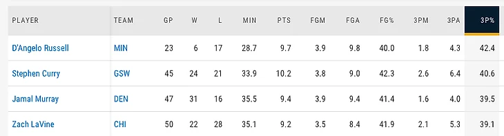 К слову Расселл в данный момент лидирует в лиге по проценту реализации трехочковый бросков с ведения – 42.4% (среди по игроков совершающих больше 4 таких бросков).