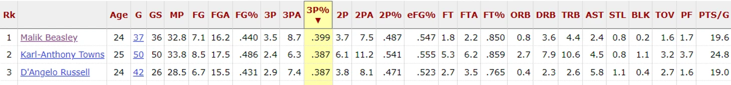 Впервые за многие годы в составе команды есть достаточно снайперов, способных наказать соперника за дабл-тим на Таунсе. Формально в прошлом сезоне у нас были бросающие игроки, но по факту Таунс пропустил 22 игры, Расселл 30 игр, а первый по кол-ву попыток из-за дуги Бизли 35 игр.