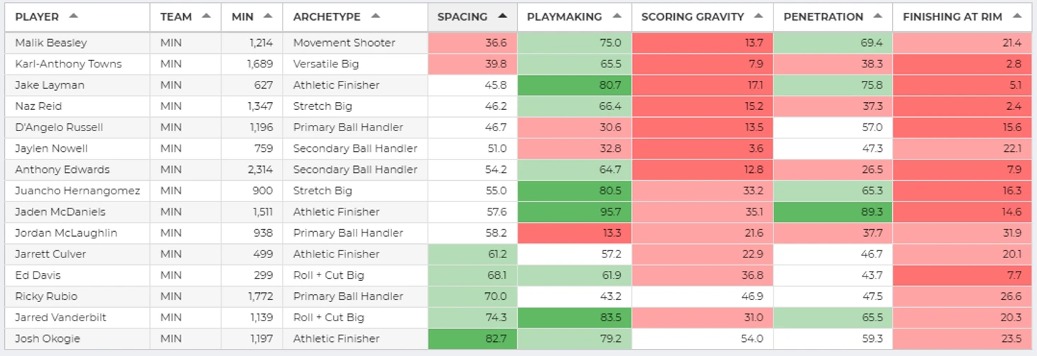Ушедшие Рубио и Калвер так и не нашли свою игру в Миннесоте, Калвер к примеру был худшим в Лиге по набранным очкам за PnR владение: 231 место из 231 игроков Лиги, Рубио на 215-ом.