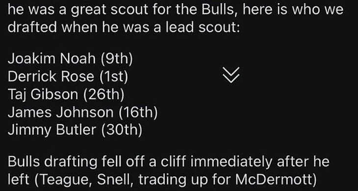 Данное подписание – это как главная сюжетная линия в хорошем фильме, когда на втором, третьем плане проходят не менее интересные истории. Вот лишь некоторые из них. Во-первых, нам пока удалось удержать Сачина Гупту, изобретателя трейд-машины и знатока CBA. Гупта будет работать в составе фронт-офиса, он является так называемым техническим исполнителем, то есть если у Коннелли будет здравая идея, то Гупта сделает все возможное, чтобы ее осуществить в рамках CBA. Во-вторых, главный тренер Крис Финч и его тренерский штаб заключили новое многолетнее соглашение с клубом. Ну и последнее, организация наняла за короткий срок несколько опытных управленцев: ассистента главного менеджера по развитию игроков Стив Сеньора из Мемфиса, вице-президент по баскетбольным операциям Мэтт Ллойда из Орландо и бывшего главного менеджера Нью-Орлеана Делла Демпса. Их имена не на слуху, но каждого из них можно охарактеризовать по-другому. Делл Демпс, который навел шороху с очередной реинкарнацией двух башен, когда Дэвис и Казинс были здоровы, тот Нью-Орлеанс играл в интересный баскетбол. Стив Сеньор, который отвечал за развитие молодежи в Мемфисе, команда которая заняла второе место в регулярке, несмотря на то что Морэнт пропустил больше 20 матчей. Мэтт Ллойд, который отвечал за селекцию в Чикаго вот список его выборов: