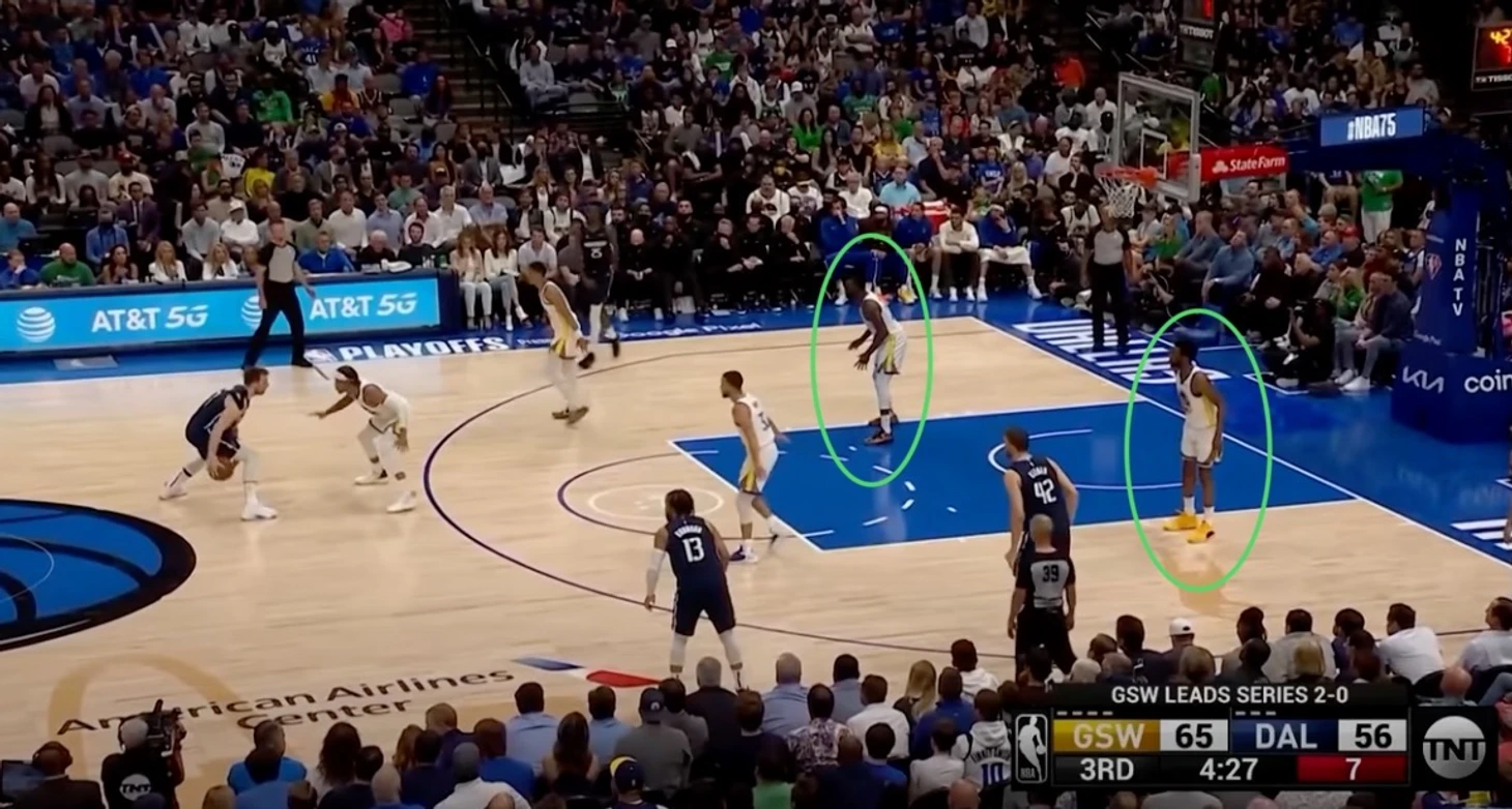 когда Лука хотел разменяться на Карри или Пула, данные игроки активно играли заступ, сдваивались на Луке, таким образом что размен не происходил и Дончич оставался против своего основного защитника, в основном против Уиггинса