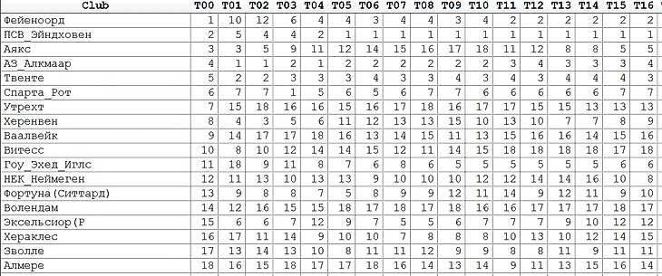Чемпион Фейенорд -2й Только 4й АЗ(4->4). А 3й – Твенте(5->3).