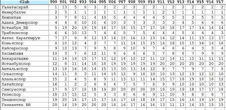 дебютанты – Пендикспор (20->19), Самсунспор (19->18).
