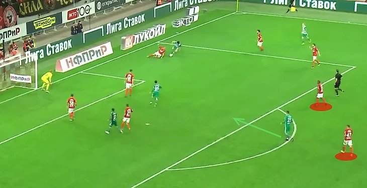 Переходя к Спартаку, здесь сейчас никакой отлаженной обороной флангов и не пахнет, что прекрасно использовала Уфа (15-я команда чемпионата на момент матча). Мельгарехо часто приходилось стягиваться со своего фланга в центр, где порой оставалось сразу двое свободных футболистов Уфы.