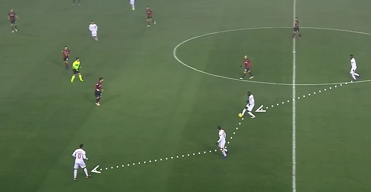 У «Милана» практически отсутствует креатив в центре, ведь люди, которые играют там чаще всего – Биглия, Кессиэ, Бакайоко – могут выполнять серьезный объем работы, но в обороне и прессинге они гораздо полезнее, чем в созидании. Кессиэ может неплохо завершить атаку, но комбинационная игра – это все же не его. Неслучайно эта троица на всех пока соорудила лишь одну голевую передачу за сезон.