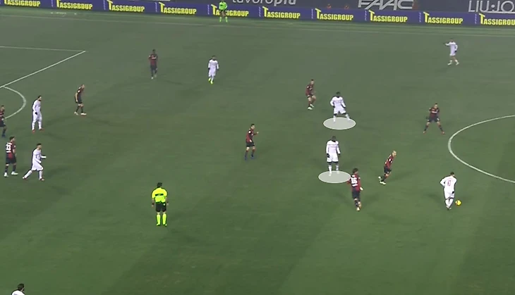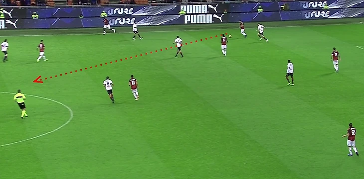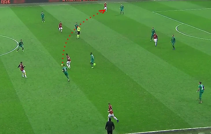 При продвижении мяча у «Милана» часто возникают проблемы как с выходом из-под прессинга, так и в ситуациях, когда соперник отказывается от прессинга совсем.