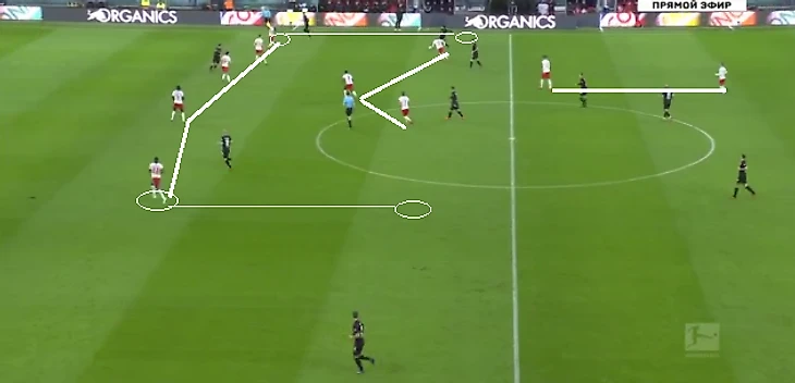 Сегодня схема 3-1-4-2 не такая уж и экзотика. Так играл «Хоффенхайм» Нагельсмана. Иногда к этому модулю молодой немецкий специалист прибегает и в «Лейпциге». Даже, когда РБ играет в 4-2-2-2 или 3-4-2-1, принципы игры неизменны. Команды Нагельсмана, не зависимо от схемы уделяют большое внимание геометрии атак, созданию ромбов и диагональных векторов для передач.