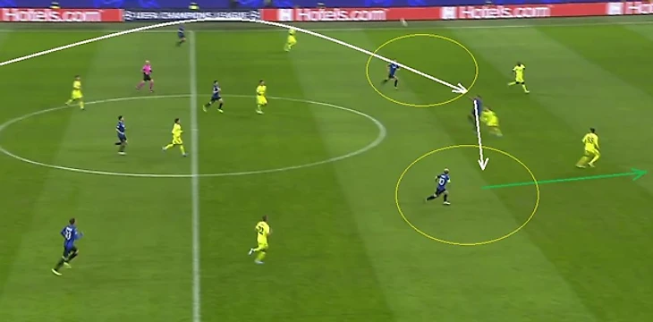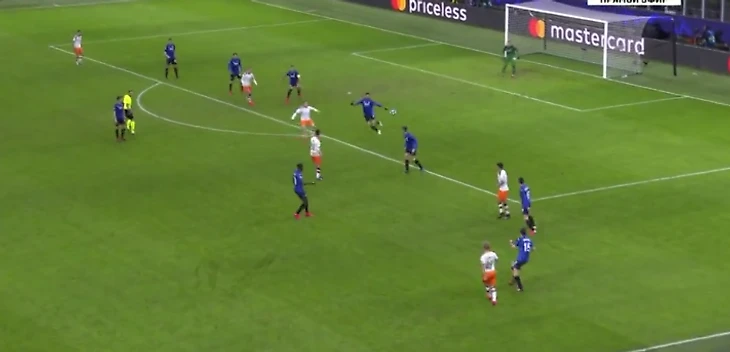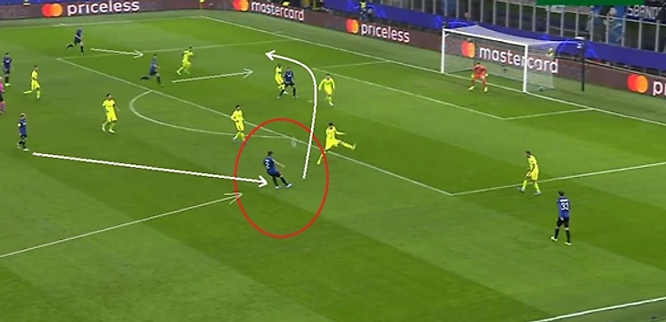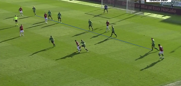 На скриншоте ниже - показательный эпизод с развитием быстрой атаки, точнее ее завершающая стадия. Высокая ментальная скорость позволяет футболистам "Аталанты" быстро ориентироваться в условиях ограниченного времени.