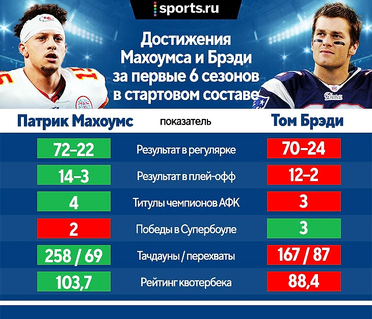 Махоумс дважды стал MVP, выиграл два чемпионских перстня и близок к тому, чтобы выиграть третий. Если это произойдет, то по достижениям он сравняется с Брэди в его первые 6 сезонов в роли стартового квотербека «Пэтриотс». Еще совсем недавно казалось, что такой путь повторить невозможно.