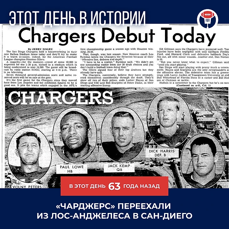 10 февраля 1961 года «Чарджерс» покинули Лос-Анджелес и переехали на 200 км южнее, в Сан-Диего ⚡️