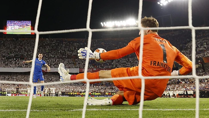 — Это был матч двух достойных соперников. Когда одни по дороге в финал выносят «Боруссию» и «Лейпциг», а другие — «Барселону» и «Вест Хэм», логично, что судьбу трофея решает серия пенальти. При этом «Рейнджерс» в основное и дополнительное время был ближе к успеху. Ключевой момент — фантастический сэйв Кевина Траппа. Ну, или невероятный промах Райана Кента — можно и так выразиться. Если бы Кент забил, мы бы сейчас не говорили о победе «Айнтрахта»…