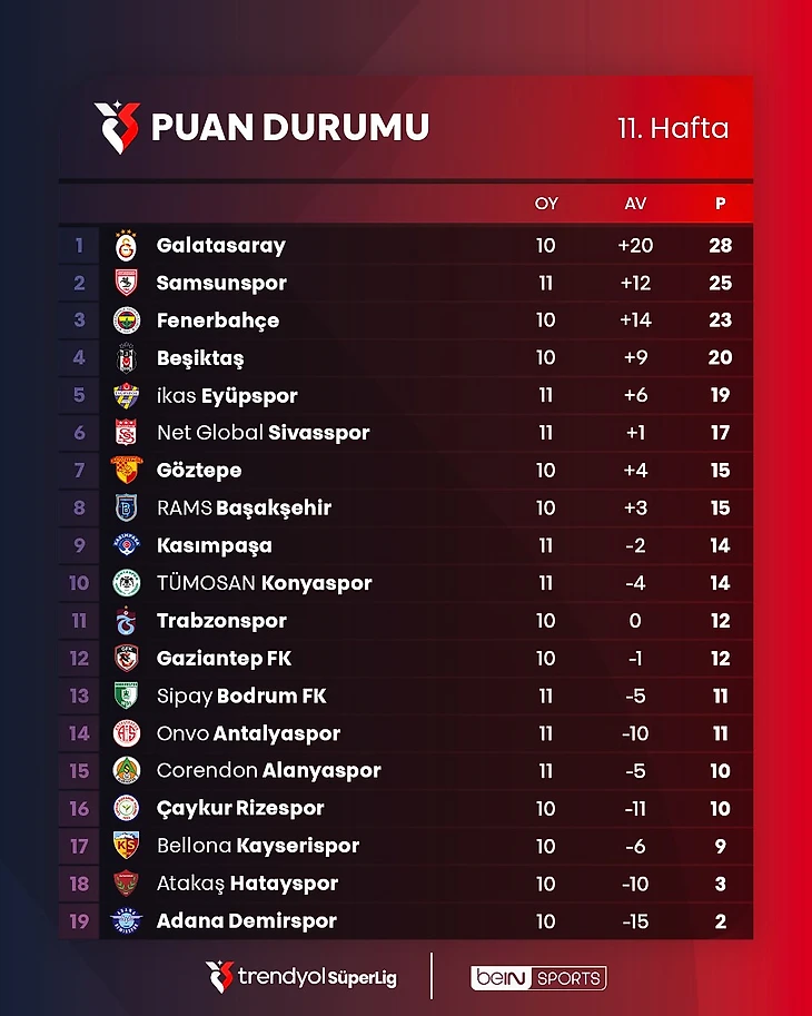 Источники: X/Twitter (@beINSPORTS_TR, @brfootball, @433, @Antalyaspor, @salihmaral25, @superlig, @Samsunspor, @Fenerbahce, @ESPNFC, @12numaraorg, @buzzspor, @AlanyaManset, @aspor), YouTube (beIN SPORTS Türkiye), Daily Sabah, FotoGool, Instagram* (@stadesfootballclub), Reddit (r/superlig, u/subr-bg). *принадлежит запрещенной на территории РФ Meta