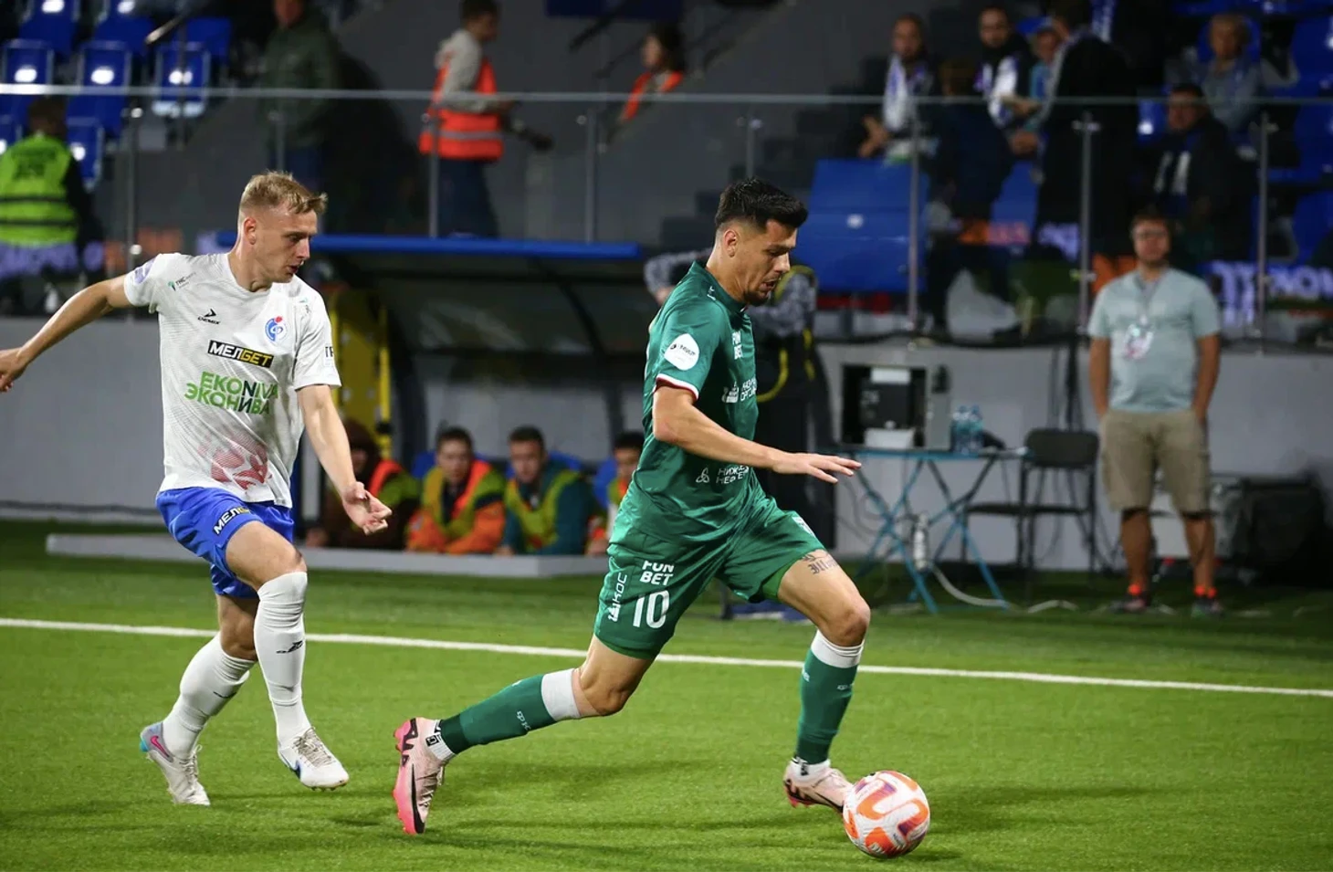 Первый тайм не удался команде Рахимова. Статистические показатели весьма удручающие - 0 ударов по воротам вообще и 41% владения мячом. На фоне этого воронежцы, идущие на последнем месте в чемпионате, смотрелись в разы интереснее и инициативнее.