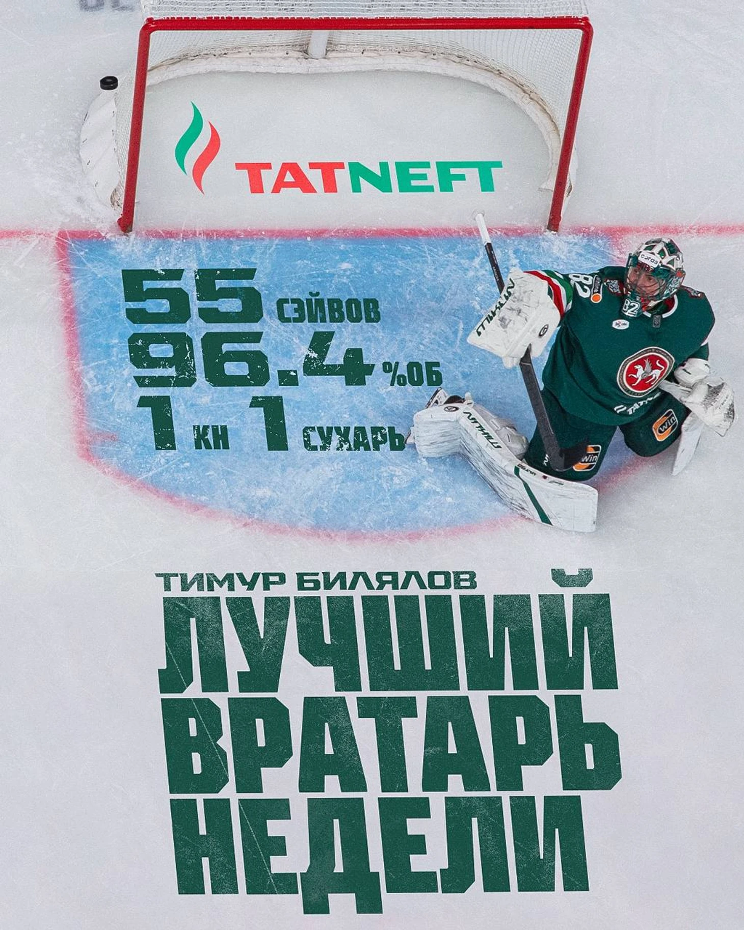 Тимур Билялов − лучший вратарь недели в КХЛ!