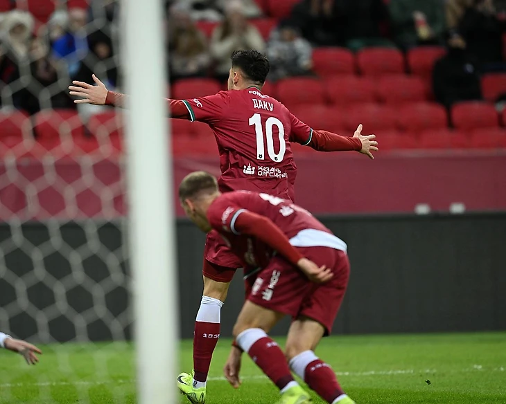 Сделать счёт 2:0 получилось у Даку! Словом, это первый дубль албанца за казанский «Рубин». До этого он забивал 16 раз, но всегда по одному голу. Как сообщает Opta, Даку второй сезон подряд набрал десять или более баллов по системе «гол+пас» в РПЛ (14 в прошлом и 11 в этом). Последний игрок «Рубина», который делал это два сезона подряд, — Бибрас Натхо (2011–2013). Сам гол случился благодаря усилиям Николы Чумича: нападающий первым оказался на добивании после удара серба. После того как мяч отскочил от голкипера тольяттинцев, Даку сразу бить не стал, а продвинулся чуть вперед и отправил футбольный снаряд в сетку ворот.