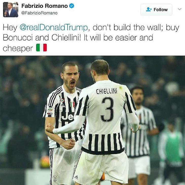 Эй, Дональд Трамп, не строй стену. Просто купи Боннучи и Кьеллини - это будет намного проще и дешевле!
