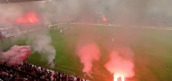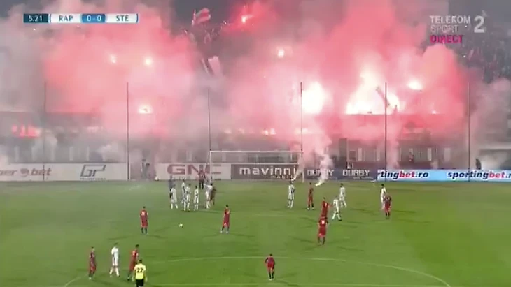 Если вы думаете, что на матчах четвертого дивизиона на трибунах ничего не происходит, посмотрите ролик с бухарестского дерби «Рапид» – «Стяуа». Пиротехника и перфомансы – на месте.