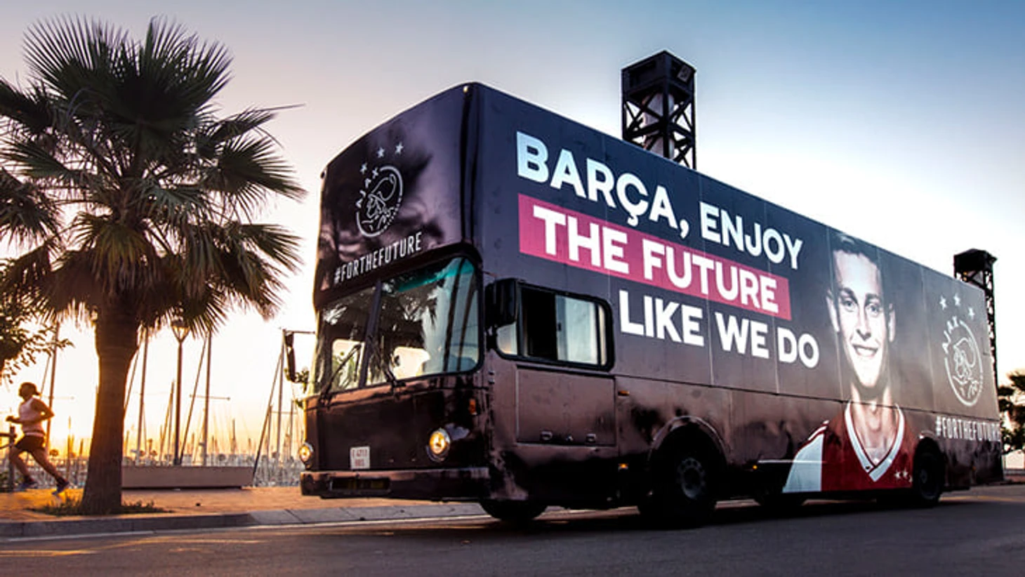 «Аякс» мило попрощался с Френки де Йонгом: голландский клуб выкупил рекламу на одном из туристических автобусов, который рассекает по Барселоне.