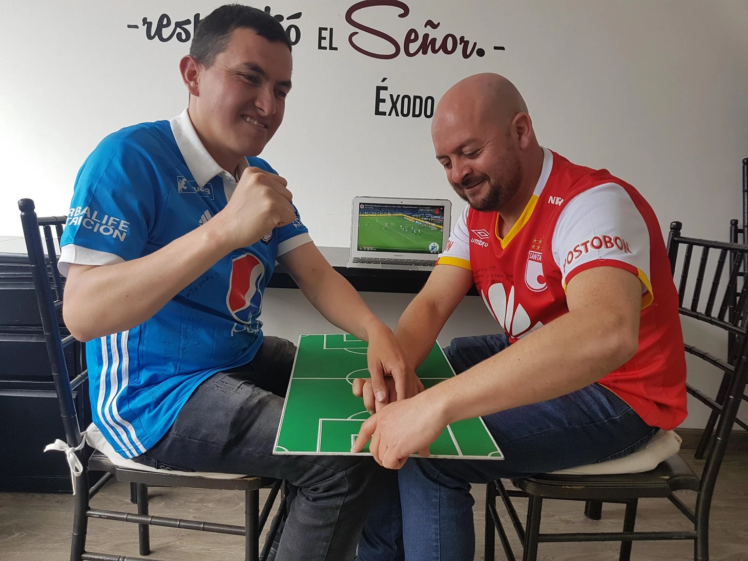 Сезар передает события с помощью специальной доски: водит рукам по зонам, а жестами объясняет действия игроков. Кроме того, доска передает вибрацию стадиона – Хосе ощущает гул болельщиков на трибунах.
