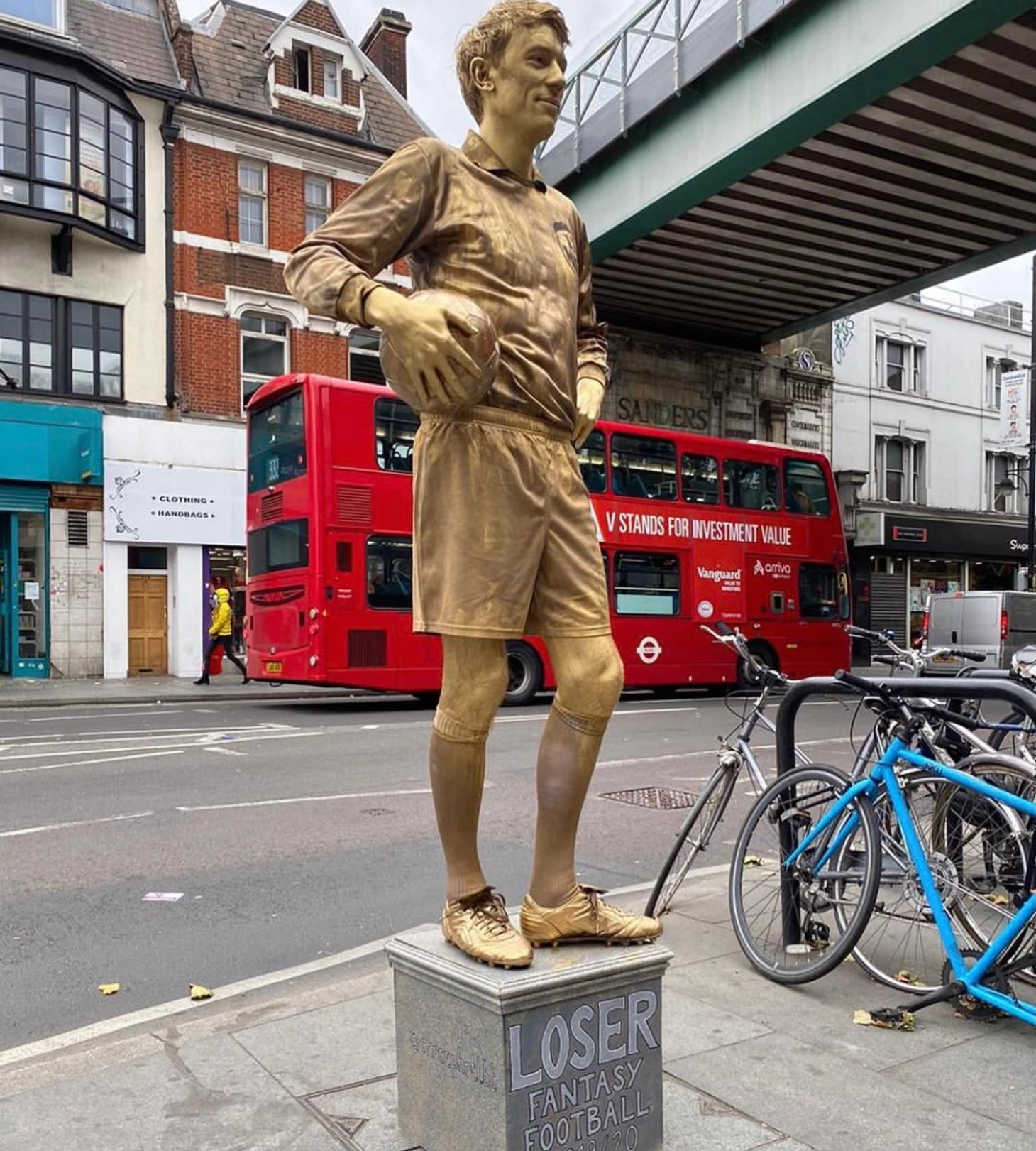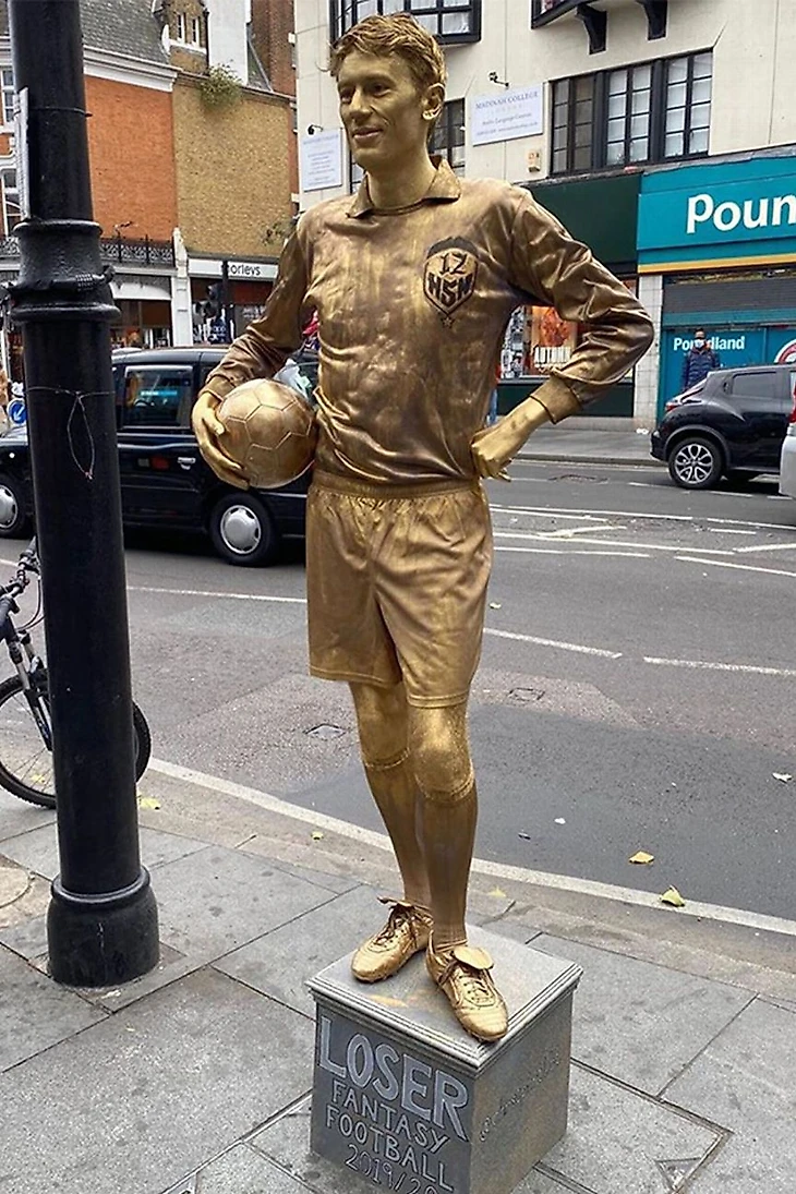 В Лондоне появился памятник проигравшему в Fantasy-футбол. Это живой человек, который неудачно провел прошлый сезон